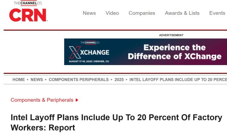 据悉,去年加入英特尔的前美光高管、英特尔代工技术与制造部门总经理纳加·钱德拉塞卡兰在发给员工的电子邮件中透露了这一消息。钱德拉塞卡兰表示,这些举措虽然艰难,但对于应对公司挑战和当前财务状况至关重要。 英特尔发言人向CRN表示,公司正采取措施,成为一家更精简、更快速、更高效的公司,以更好地满足客户需求并增强执行力。这些决定是基于对未来业务定位的仔细考量,公司将关怀和尊重员工。 据《俄勒冈人报》报道,英特尔还计划大幅削减其他业务,但未透露具体细节。截至去年12月,英特尔拥有108900名员工,较前一年有所下降。 据介绍,此次裁员计划是在首席执行官陈立武宣布削减运营和资本支出以精简组织、消除管理层级和加快决策速度后制定的。陈立武在公开备忘录中告诉员工,这些重大变动将减少员工规模,但公司将在裁员与留住关键人才之间取得平衡。 外媒称,陈立武在4月底宣布大规模削减成本计划时表示,将迅速采取行动提高执行力和运营效率,赋能工程师创造优秀产品,并倾听客户声音做出改变。这些举措旨在帮助英特尔在竞争激烈的半导体市场中重获优势。(青云) |